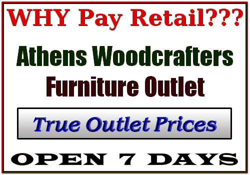 Over 13,000 square feet of furniture to explore Open 7 days a week for your convenience We deliver right to your home Cash, check, or credit accepted No lines. No high-pressure sales. Ever.Read more about Outdoor Furniture Special at Athens Woodcrafters Furniture Outlet!