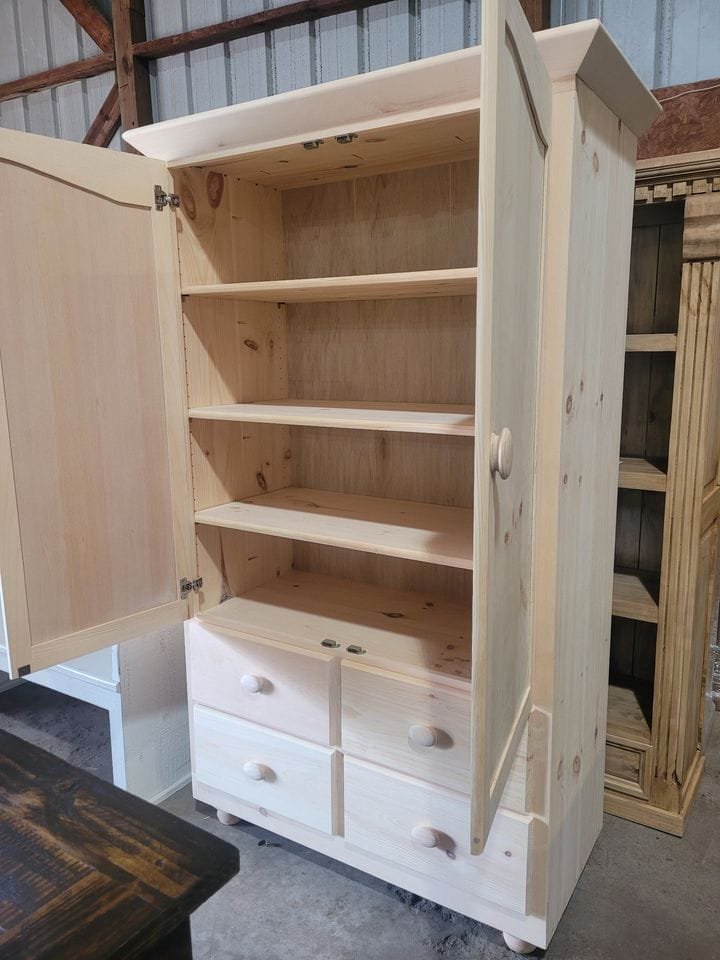 In the furniture business, one thing we always run into as a store owner is how much to order and keep in stock. Because the retail business, in any industry, is like the ocean. It comes in waves. And sometimes you get hit with Tsunamis. At Athens Woodcrafters Furniture Outlet, we have 13,000 square feet of New & Pre-owned furniture in stock. And right now, a great part of that inventory is pantries! All of them are On Sale so what are you waiting for? Below is a sample of some of the beautiful colors and styles we have in stock. We have unfinished pantries that you can stain or paint with your own beautiful colors.