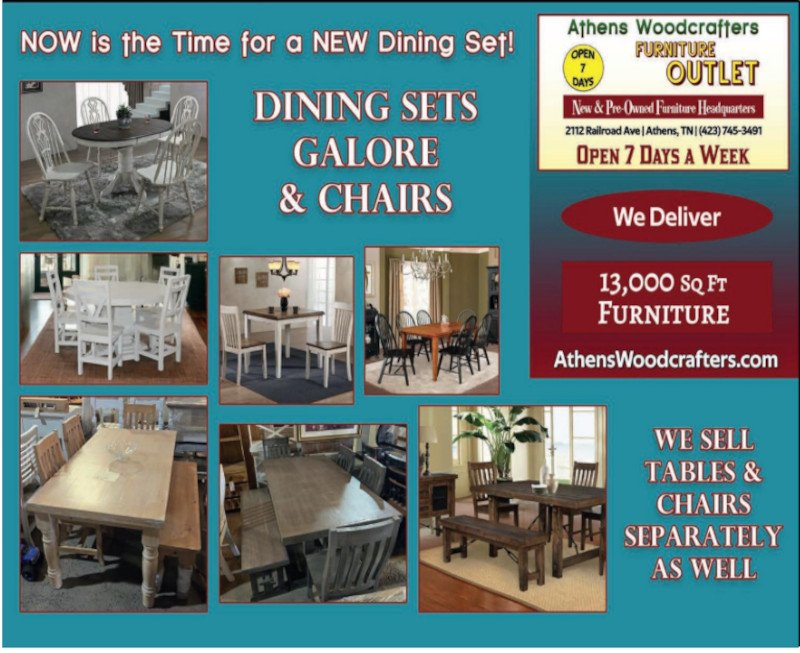 For well over 30 years, Athens Woodcrafters Furniture Outlet has been selling high quality, name brand furniture for less than our competitors. And we’ve done it with no lines, no hassles and excellent customer service. That is why we have 4.7 out of 5 Stars with 34 reviews on Google. And we have about 20 Dining Room Sets for you to choose from. Plus, we deliver within a 60 mile radius of our location here at 2112 Railroad Ave in Athens, TN. We have many Rustic styles to choose from. We also have Pre-Owned Furniture which includes some dining sets. Our prices are typically better than any of the other furniture stores around. Also, as aforementioned, there are no lines and no high pressure sales here ever.