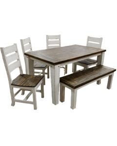 Farmhouse Dining Set w/6'Table 4 Chairs and Bench