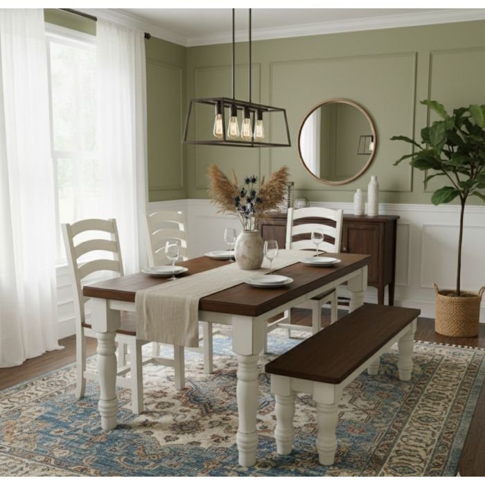 Farmhouse Dining Set w/6’Table 4 Chairs and Bench