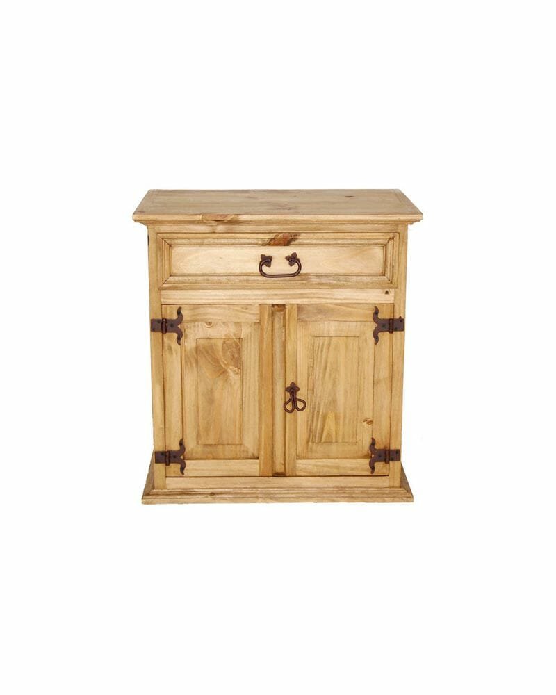 The 2 doors give you storage for larger items. As with all the rustic items each is made of all wood. The natural wax finish lets you see the character of the wood. This night stand measures 26″w x 29″ h x 19″ d.