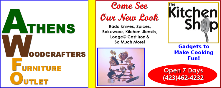 Address: Athens Woodcrafters & The Kitchen Shop | 2112 Railroad Ave | Athens, TN 37303